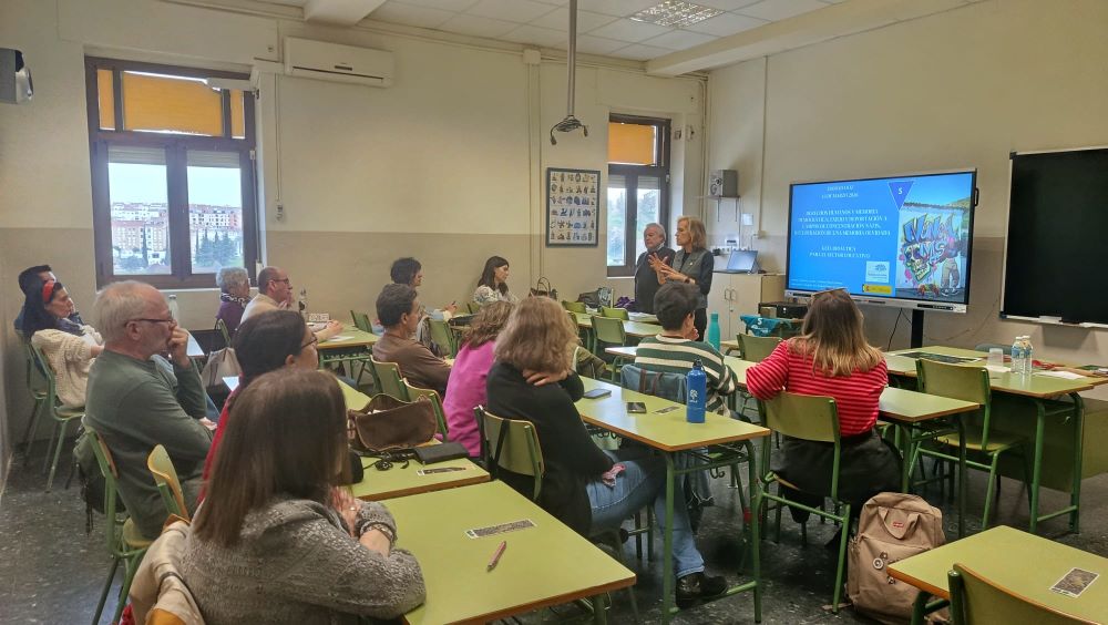Los días 12 y 13 de marzo hemos ido a la EOI de Badajoz para hablar del proyecto Stolpersteine, de derechos humanos, de memoria democrática y de las actuaciones realizadas en Andalucía sobre el exilio y la deportación andaluza a campos de concentración nazis.